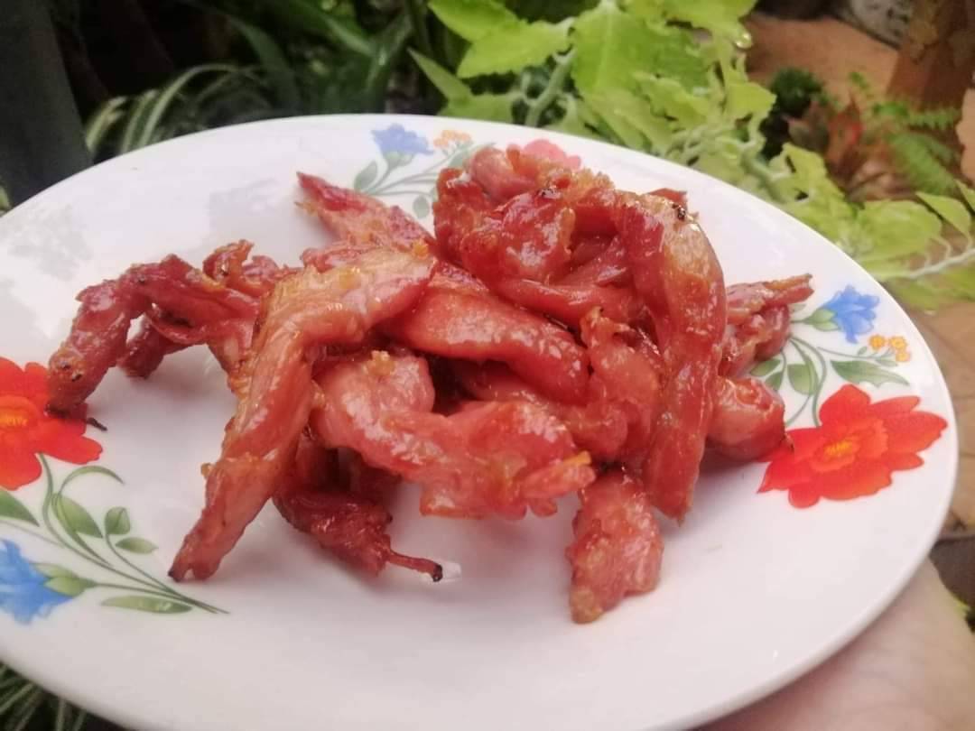 5. คุณสมบัติ ผลิตจากสันคอไก่ ใน 1 ตัว มี 1 ชิ้นเท่านั้น ปรุงรสด้วยเครื่องเทศ หมักให้เข้ากัน นำไปตากแห้งพอหมาดด้วยพลังงานแสงอาทิตย์ จากประสบการณ์ผู้ผลิตมากว่า 20 ปี การันตีคุณภาพ