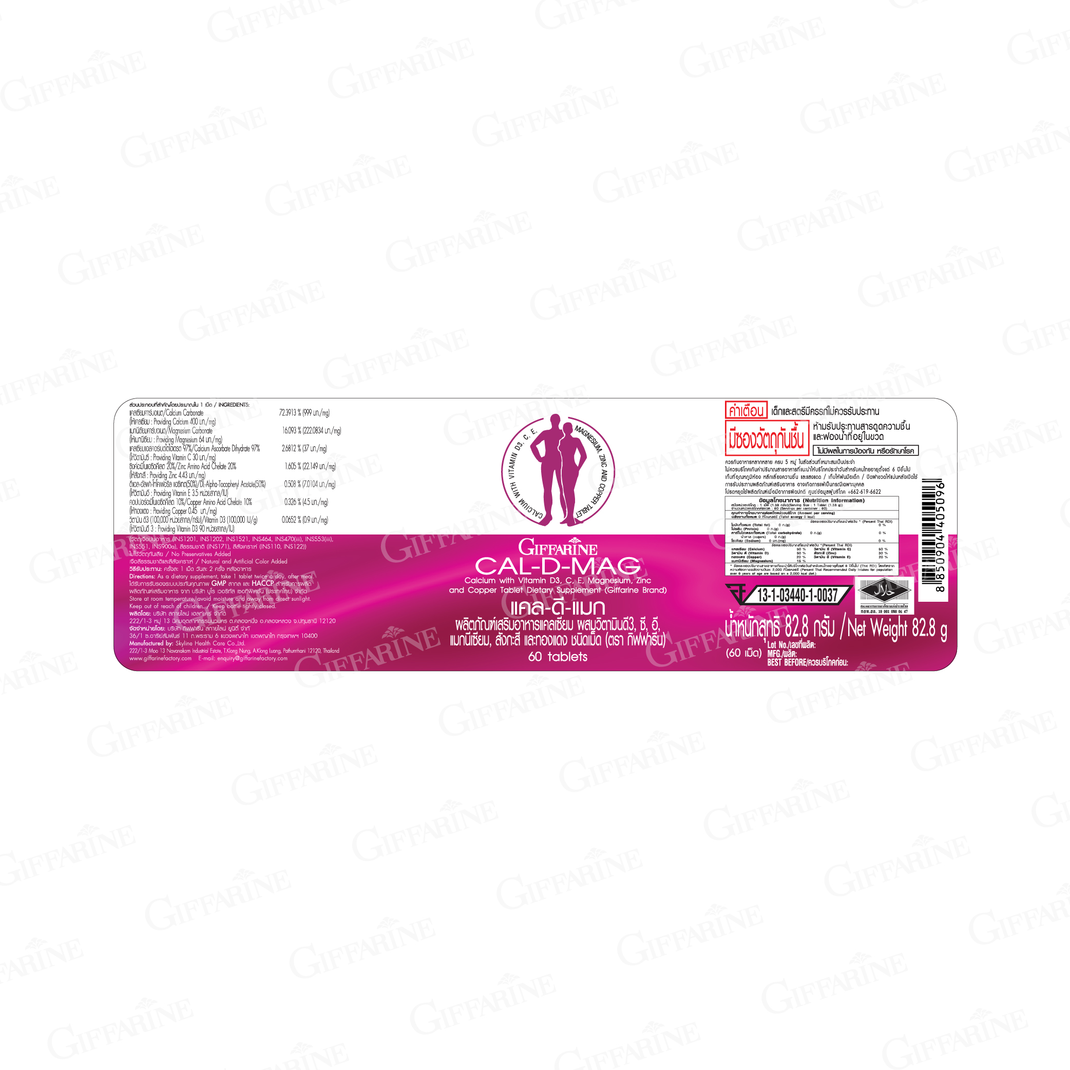 ผลิตภัณฑ์เสริมอาหารแคลเซียม ผสมวิตามินดี 3 ซี อี แมกนีเซียม สังกะสีและทองแดง ชนิดเม็ด ตรา กิฟฟารีน