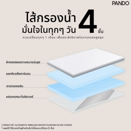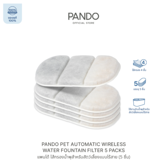 แพนโด้ ไส้กรองน้ำพุสำหรับสัตว์เลี้ยงแบบไร้สาย (5 ชิ้น)