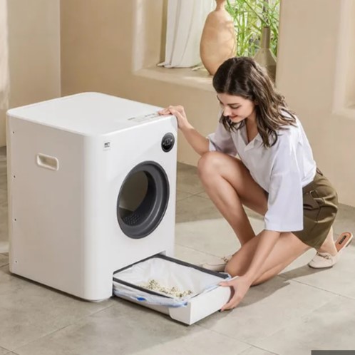ห้องน้ำแมวอัตโนมัติอัจฉริยะ ทรงมินิมอล สีขาว