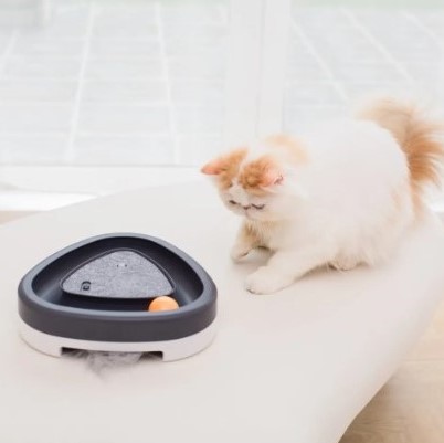 ของเล่นแมวแบบโต้ตอบของ Pet Marvel มีลูกบอลเคลื่อนที่ในสามเหลี่ยม การโคจรรูปสามเหลี่ยมและไม้กายสิทธิ์ที่มีขนนกที่หยอกล้อแมวอย่างสนุกสนาน มีเสียงนกกาเหว่าในเวลาเดียวกันทำให้แมวเล่นกับมันได้ทั้งวัน
