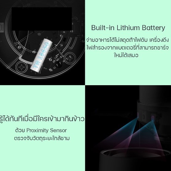 • แบตเตอรี่ Built-in Lithium มีแบตฯในตัว ชาร์จไฟได้ในตัว ใช้งานต่อเนื่องได้ 6-7 วัน ไฟดับก็ยังใช้งานได้